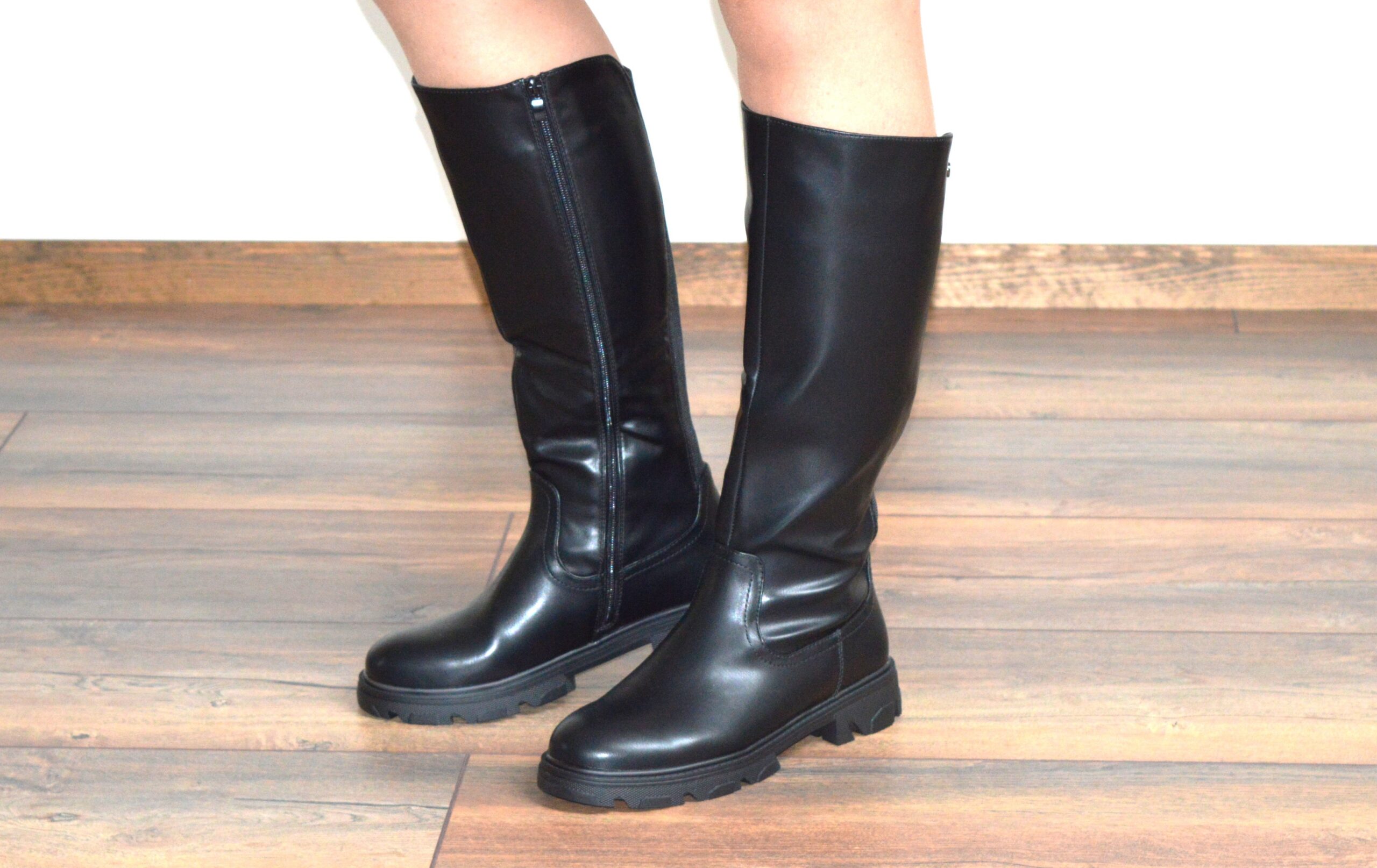 Mustad naiste kevad-sügis saapad, kunstnahk, sääre pikkus 39cm,