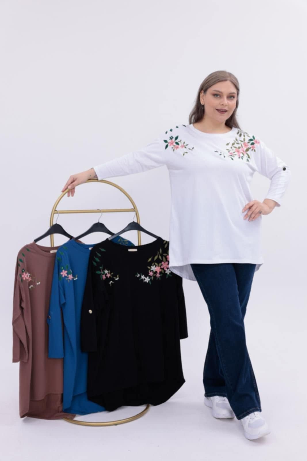 Naiste pluus-tuunika,puuvill, elastaan, must, valge, pruun. RÜ- 130cm, pikkus 80cm