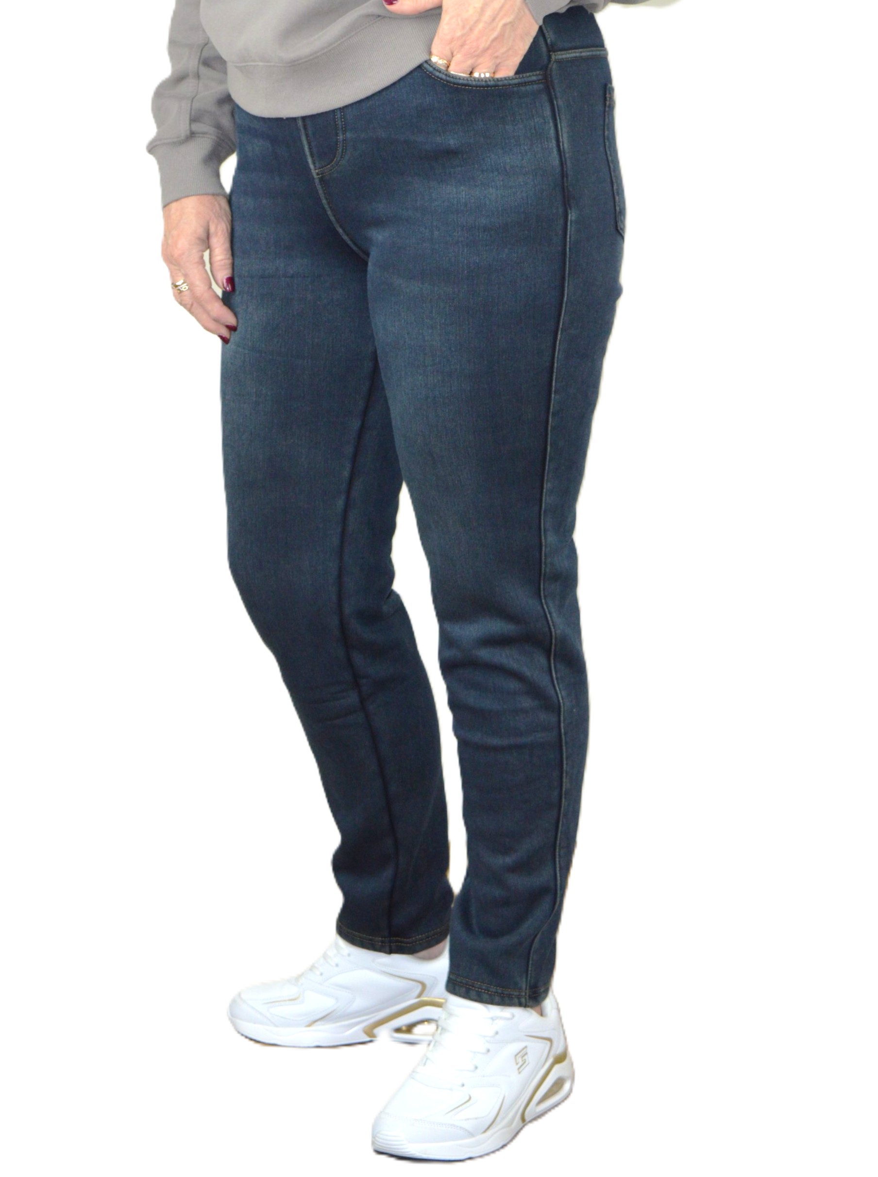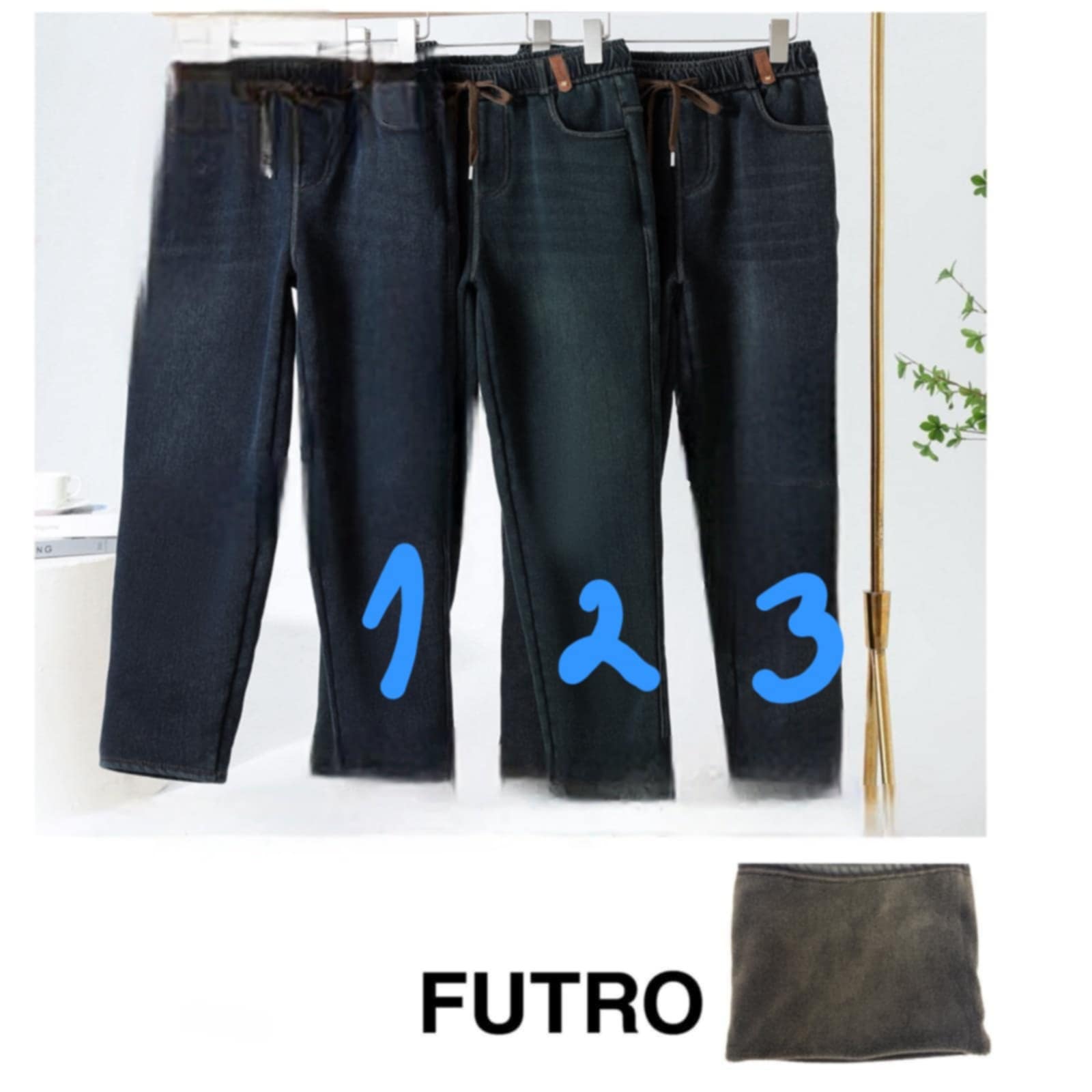 Kõrgema pihaga naiste soojad teksariidest püksid 2XL-5XL